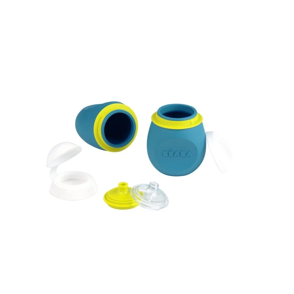 These pouches are made of superior quality silicone that is BPA, lead and phthalate free and have a wide opening to allow for easy filling and cleaning. The are freezer, microwave and dishwasher safe and have a 180ml capacity.