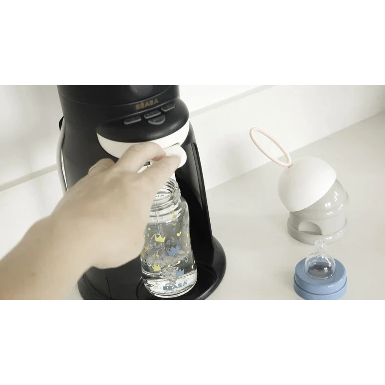 Prepares bottles and warms bottles and small jars New generation. The fastest on the market: warm water in 30 seconds so that baby doesn’t wait Simple and intuitive for preparing a bottle with only one hand Bain-marie function for reheating small jars and bottles.