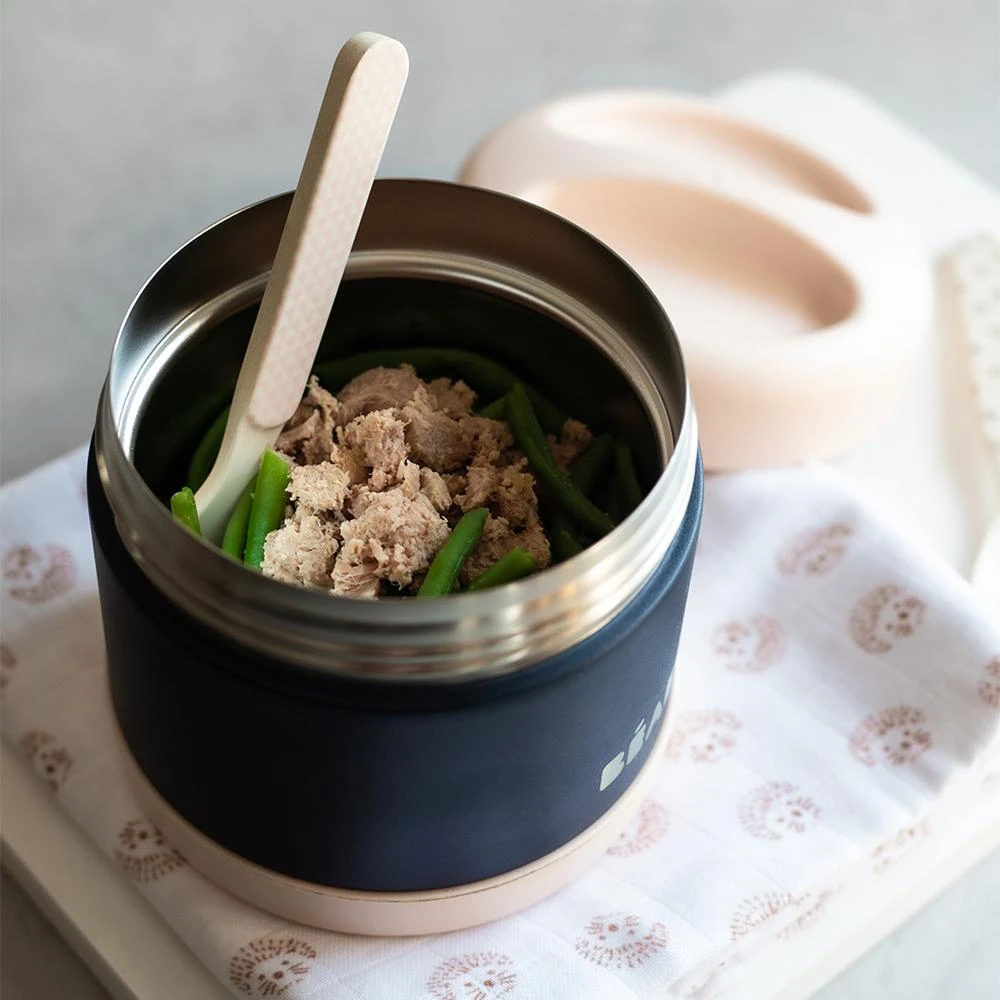 A warm meal to take anywhere! The isothermal stainless-steel Thermo-Portion from Béaba can be used to transport baby’s meals when out and about. In double-walled stainless steel, it conserves the temperature for several hours, 7 hours for cold foods (stewed fruit) and 6 hours for warm meals (puree or similar). Without transferring taste or smell, it is the perfect alternative for feeding baby when out and about. Solid and airtight, it is easily transportable.
