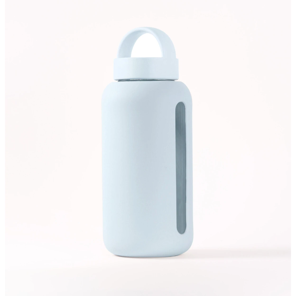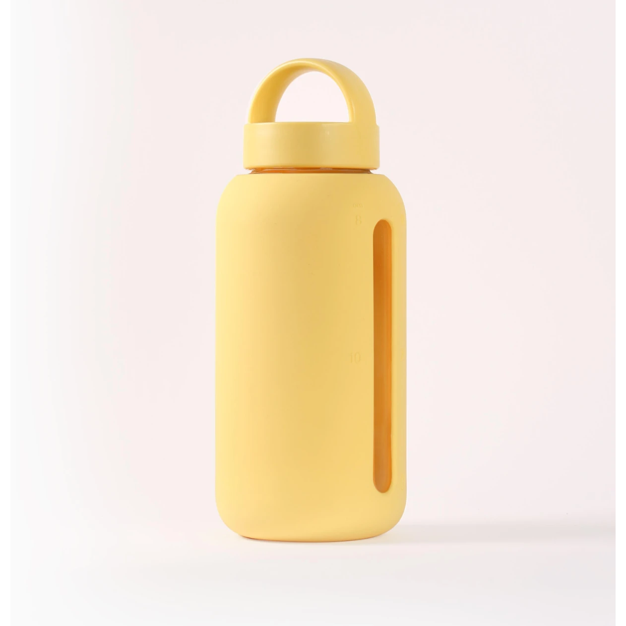 A simple glass water bottle with hydration tracking designed to help you meet your daily recommended water needs.