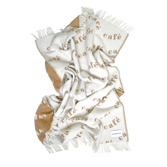 The Cafe Blanket is jacquard-woven from 100% New Zealand wool with fringes on the short sides. A thick and super-soft blanket that is mirror-inverted on the opposite side. The reversible pattern allows you to swap between two different moods. It’s big enough to let someone join you. It keeps you warm and upgrades your living room in a split second. The Cafe Blanket is woven in Lithuania and certified with the Woolmark and OEKO-TEX label. Wool is 100% biodegradable and therefor does not contribute to microplastic pollution in our oceans or on our land. Wool is a circular fibre.