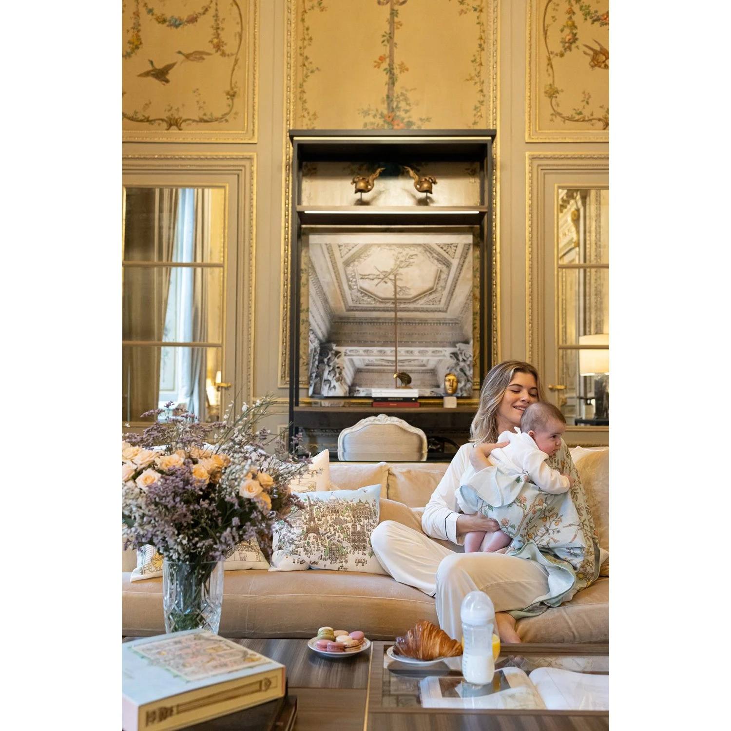 The matching Paris swaddle, large Paris Bib and small Paris Bib are made and designed in France. It is super soft and made from organic cotton. This will make the perfect newborn baby gift together with Monceau Mansion gift box and shopping bag.