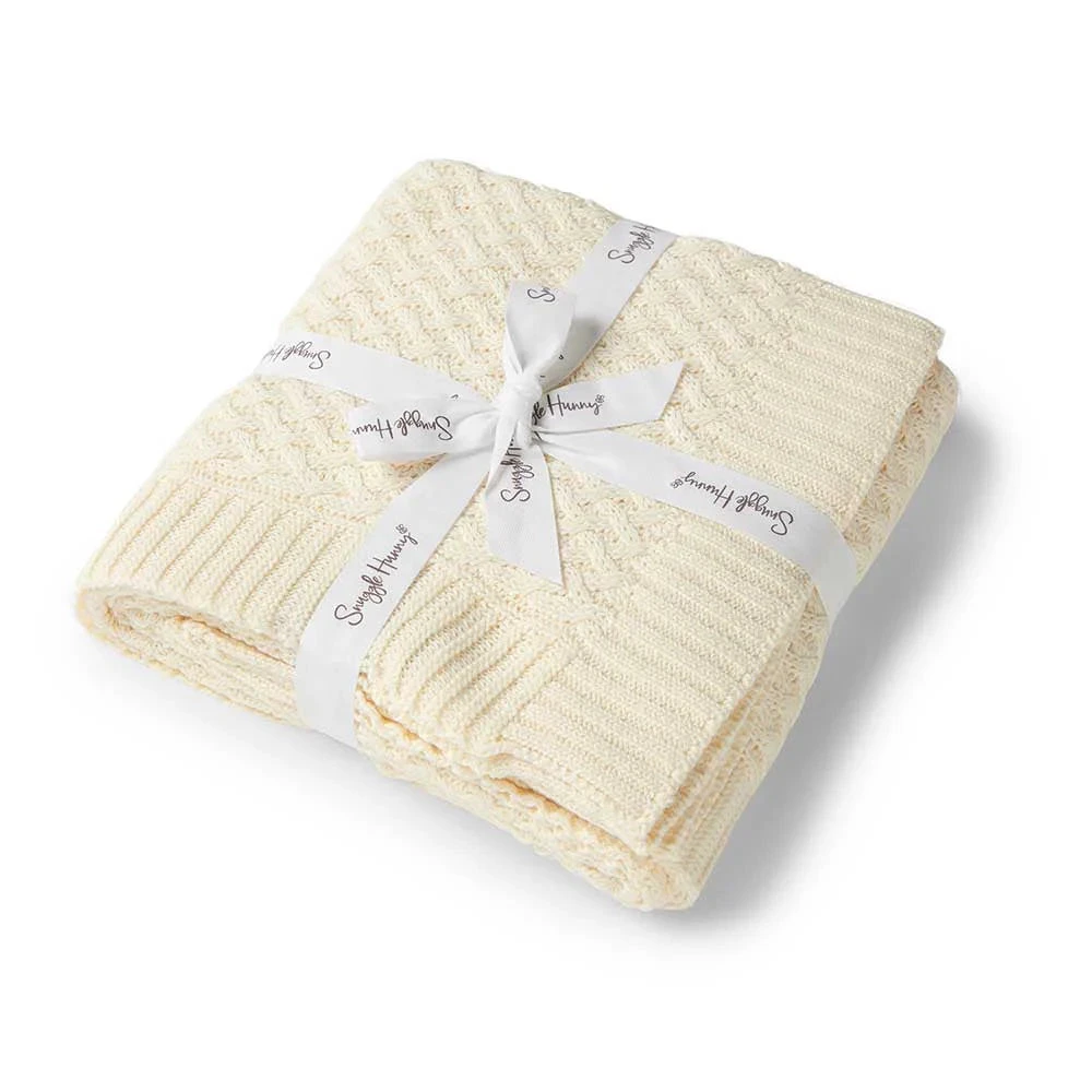 Our gorgeous Snuggle Hunny Cream Diamond Knit Baby Blanket is made from super soft 100% organic cotton and keeps your child snug and warm. This would make the perfect gift for a new baby or a baby shower.
