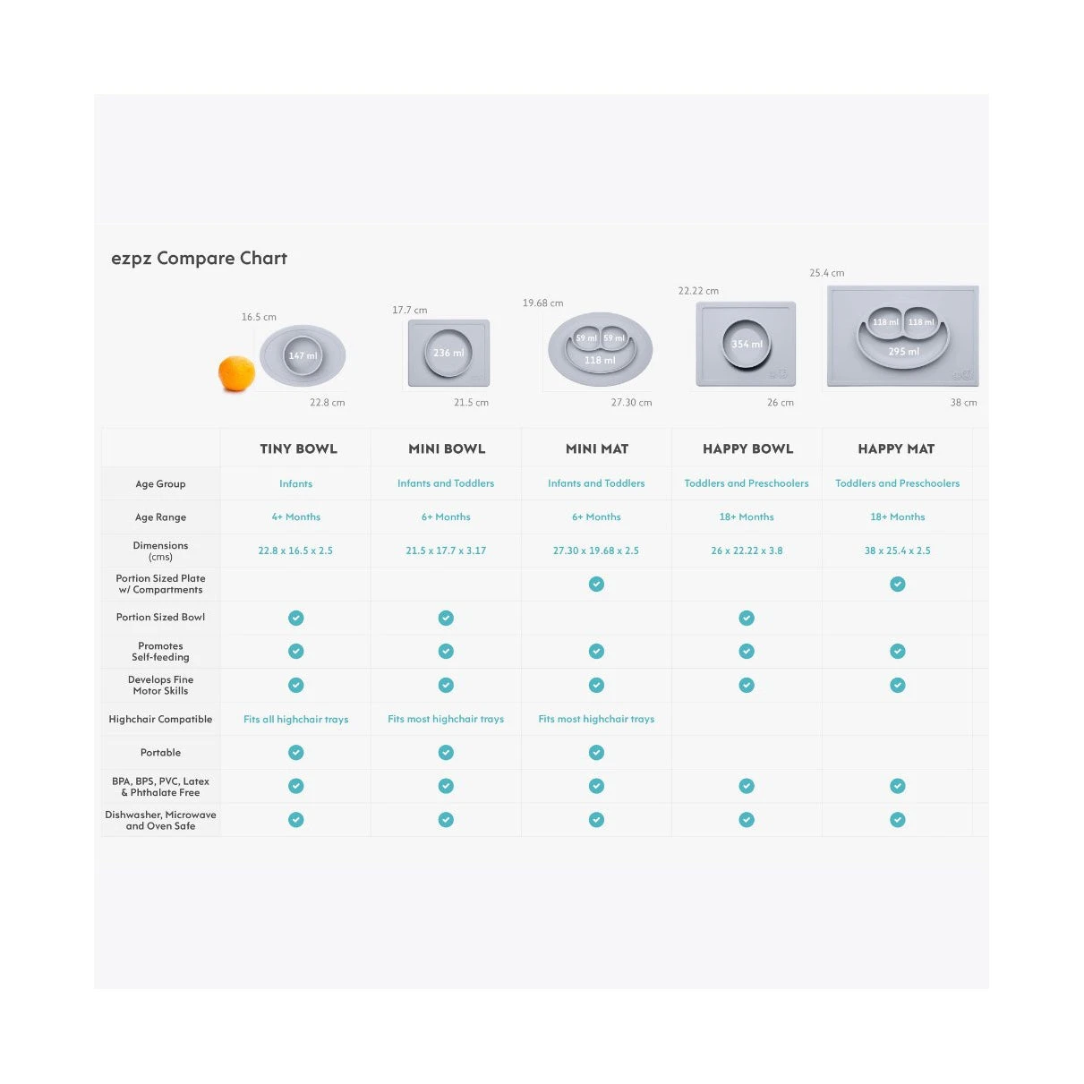 The EZPZ Mini Mat is the most popular item from EZPZ. It is an all in one placemat and plate that suctions to the table – this means that it captures the mess and reduces tipped bowls and plates.