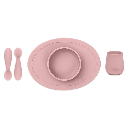 The EZPZ Tiny First Foods Set is designed to fit on the tiniest of highchair trays, including the Stokke Tripp Trapp and Boon Flair trays.