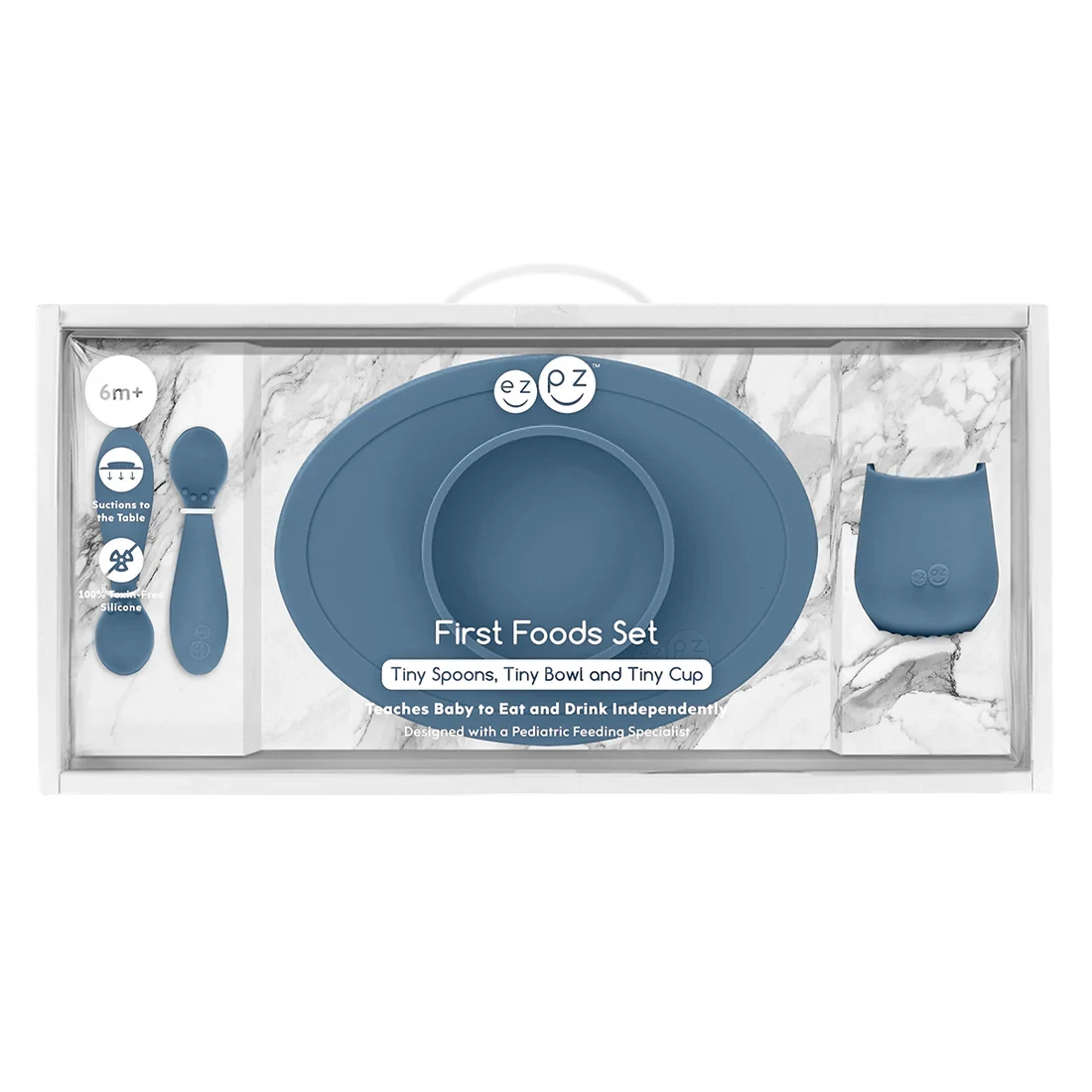 Learning to self-feed is an important developmental milestone. The ezpz Tiny Spoon is designed to help baby learn how to feed independently.