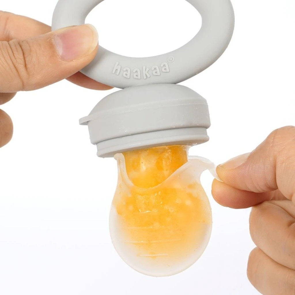 The Haakaa Fresh Food Teething Feeder & Cover Set is the perfect way to introduce solids into your baby’s diet without the risk of choking. Simply put fruit, vegetables or meat into the silicone pouch and seal tight. Or you could cover with the new attachment – silicone pouch cover, and put some liquid, such as milk and juice to make some cold, delicious ice pops on the hot summer day!