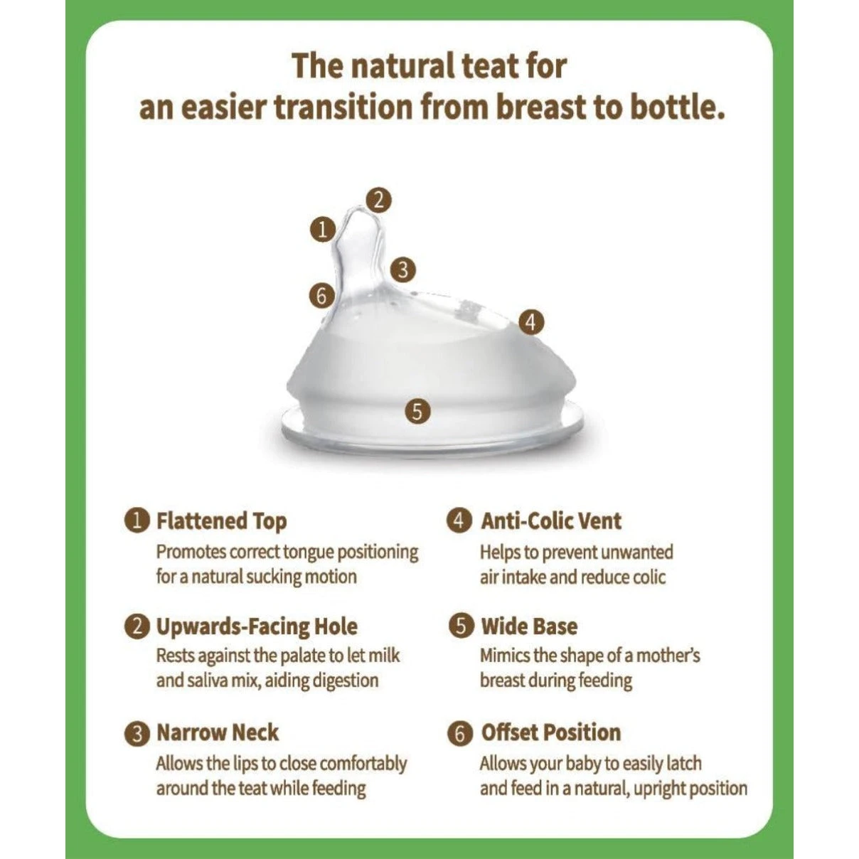 - Soft, naturally-shaped orthodontic teat mimics the shape of a mother’s nipple during breastfeeding
