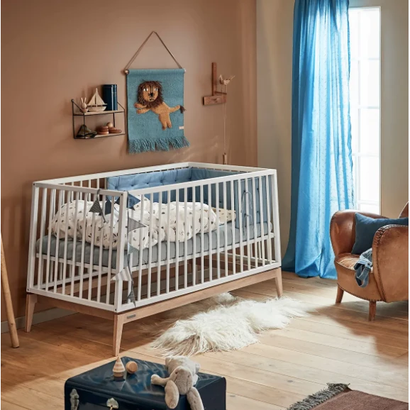 The Luna Cot by Leander comes in your choice of two sizes; 120 x 60 cm and a larger 140 x 70 cm. The stringent lines and elegant design between body and legs adds a lightness to the aesthetic, matching the natural playful nature of a child. The base has two height settings which supports your growing, active infant.