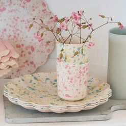 - The dress is crafted from layers of tulle in mint, pale yellow, peach pink and dusky pink
