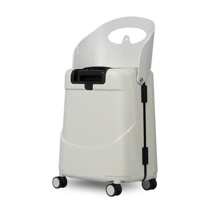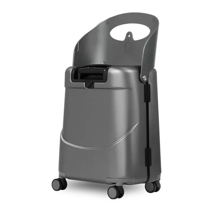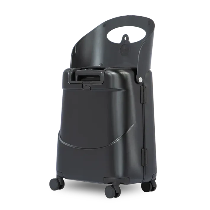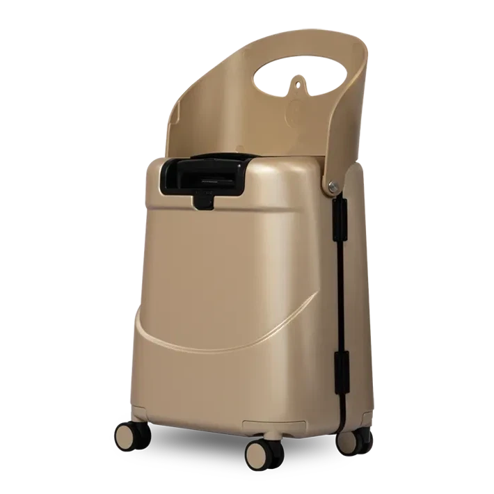 Designed for multi-function travel, the MiaMily luggage bag universally configures into a ride on suitcase for children or a portable seat for adults, allowing your child to quickly and conveniently travel with you atop the travel suitcase or providing a resting place for adults when standing for long periods of time. When traveling without a child, the seat on this spinner suitcase can be used to safely store a diaper bag, travel bag or a briefcase.