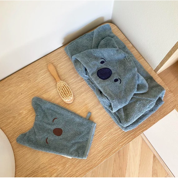 The washcloth is made of 100% organic cotton terry, and designed so that its fit makes it easy to wash your child.