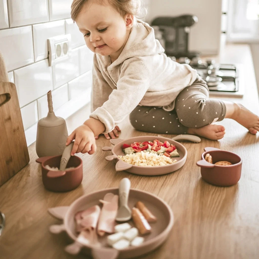 The Akila Silicone Plate is made of LFGB certified silicone without any harmful chemicals. The silicone is soft and practical as it can go in the dishwasher and will not break if dropped on the floor.
