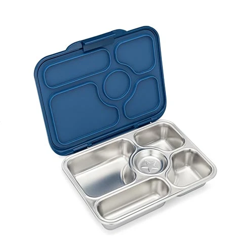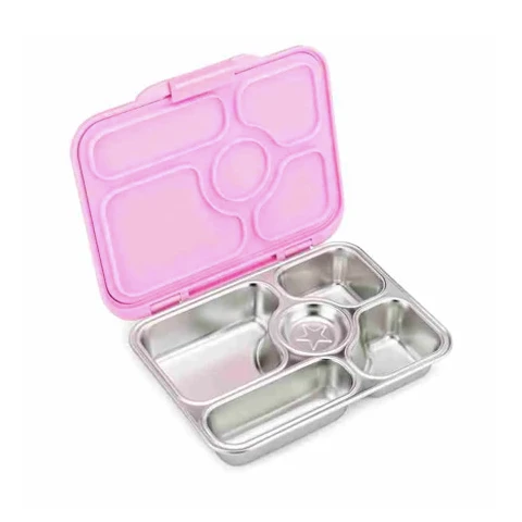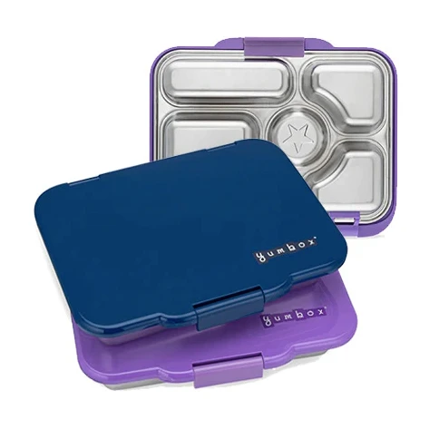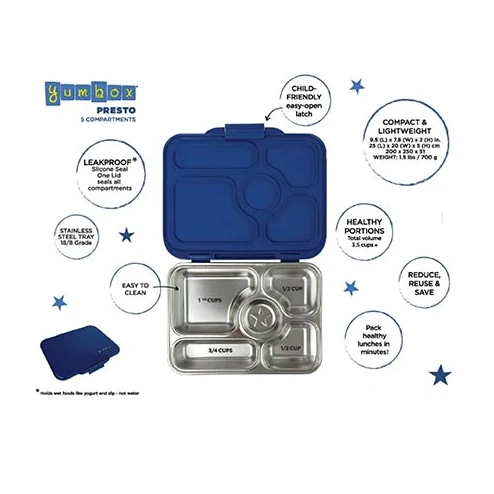 Yumbox Presto Stainless Steel Bento Box is designed for kids and adults. Featuring a more sustainable 5 compartment stainless steel tray and leak-proof plastic lid it lets you pack fruit, nuts, crackers and wet foods (like yogurt, fruit puree – not drinks/water). It’s a fantastic way to pack healthy meals for school, work and outings, using safe eco-friendly materials that are better for the planet.
