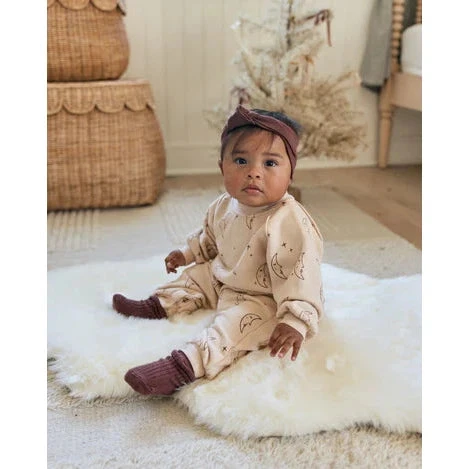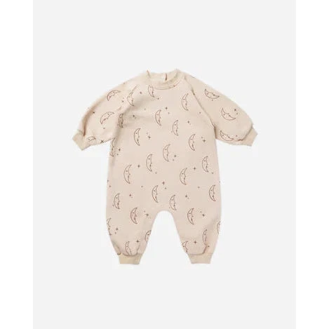Our jumpsuit is made from soft french terry + features snaps along the inseam for easy changing.