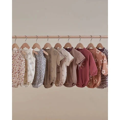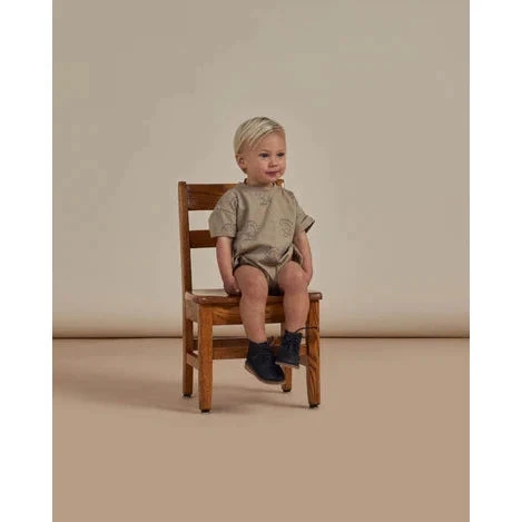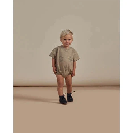 Shortsleeve bubble romper that will be a go-to this summer! Featuring elastic leg openings and bottom snap closure to ensure easy changing.