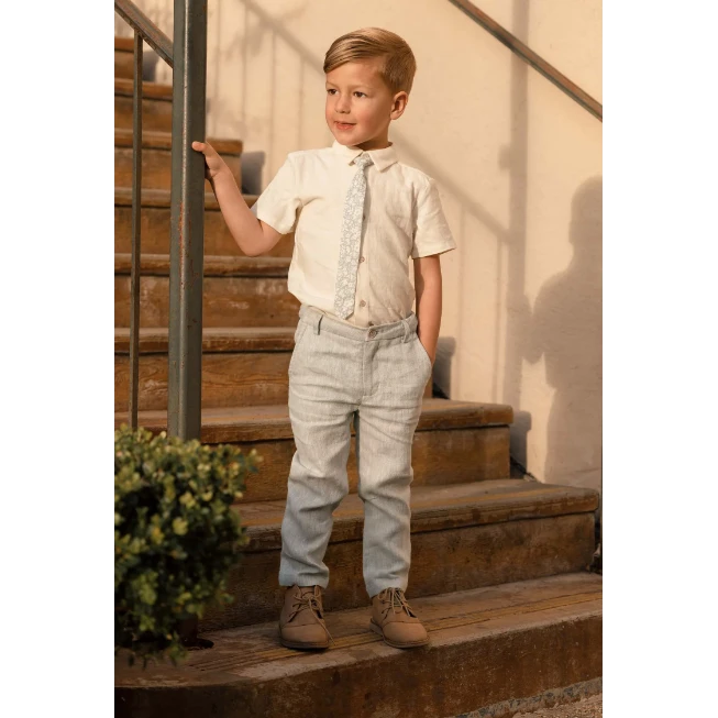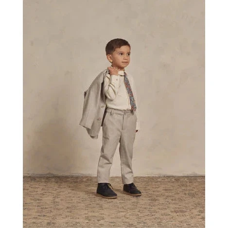 Our Sebastian Pant features tailored details made of soft textured cotton melange fabric. Pants include an adjustable elasticized waistband, zip fly with tonal wood summarys, and pockets. Wear it as a separate or better yet, suit up with the matching blazer and tie.