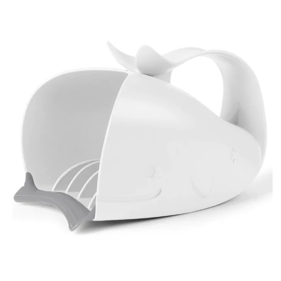 Make tub time funtime with the help of Moby! The innovative rinser has interior fins that channel a steady flow of water to ensure quick cry-free rinses. A soft rubber lip fits snuggly to the forehead, preventing water from getting in eyes. The easy grip handle allows you to hold the rinser in one hand and baby in the other.