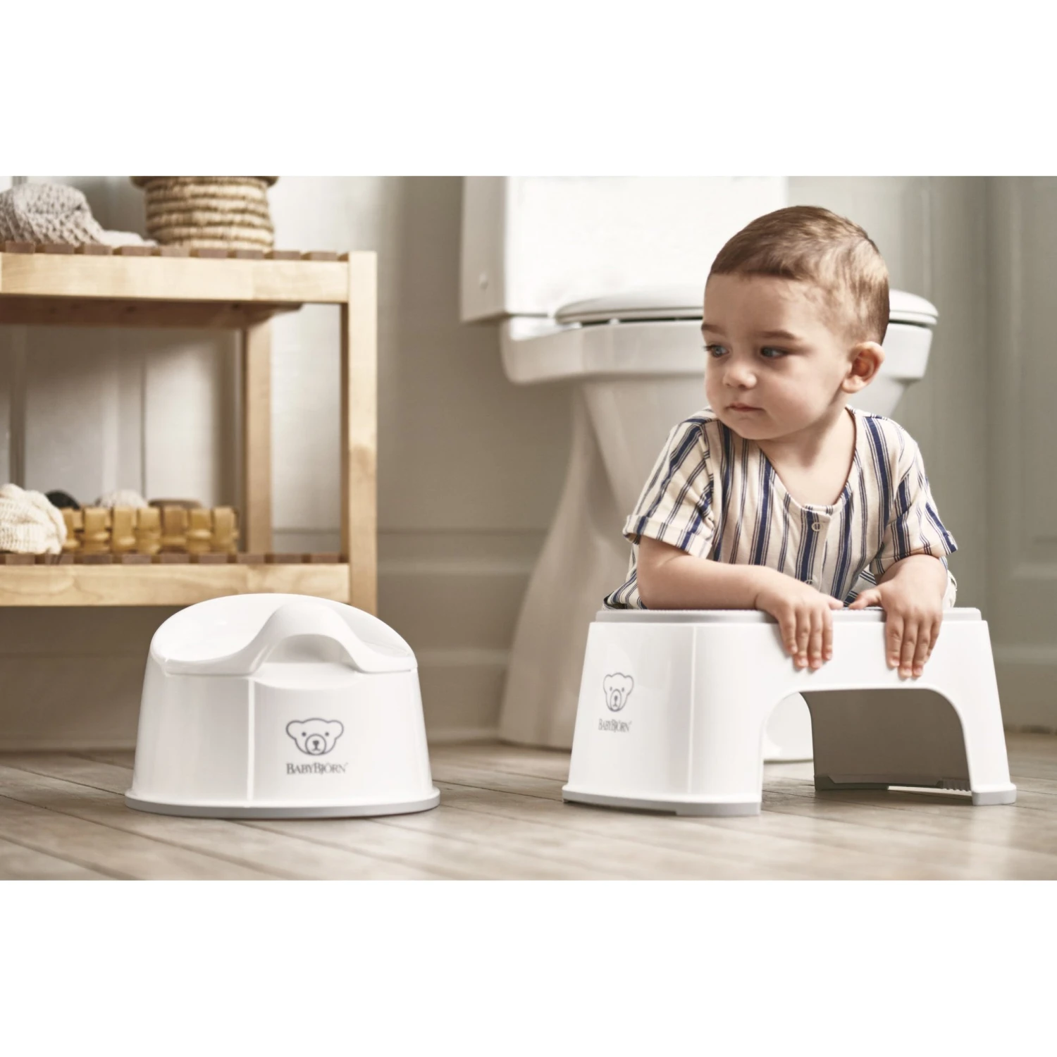 The Baby Bjorn Step Stool is perfect for your child in the bathroom. It helps your child reach the toilet or bathroom sink by themselves. The step stool contains a non-slip rubber surface which provides a good grip for your child’s feet. Always supervise your child when using the step stool.