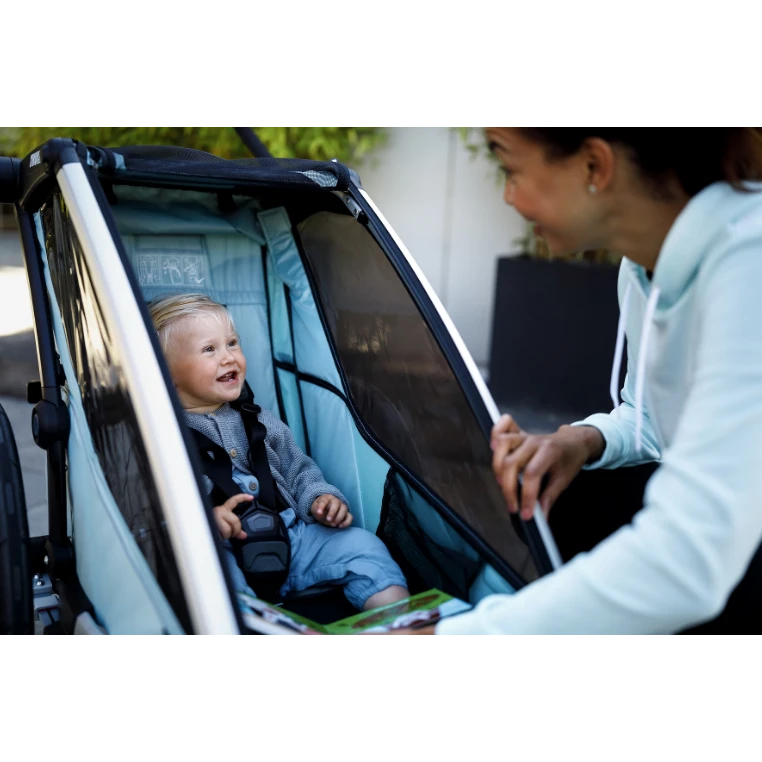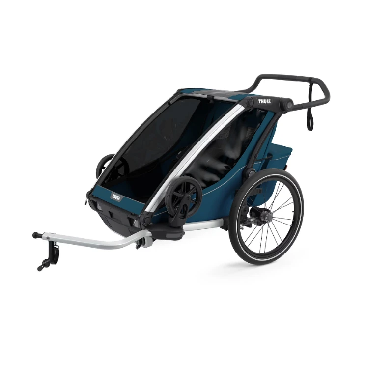 Thule Chariot Cross gives you the freedom to enjoy almost any outdoor adventure withyour child. It is designed for active families who want a versatile, tough, and stylish bike trailer, and who love being outdoors all year round. The all-round trailer and stroller offers comfort and flexibility for families with an active lifestyle, and the optional Jogging Kit (sold separately) makes it a great training partner. An extra large cargo bag provides additional space for what you need to bring. Includes Standard and Comfort features.