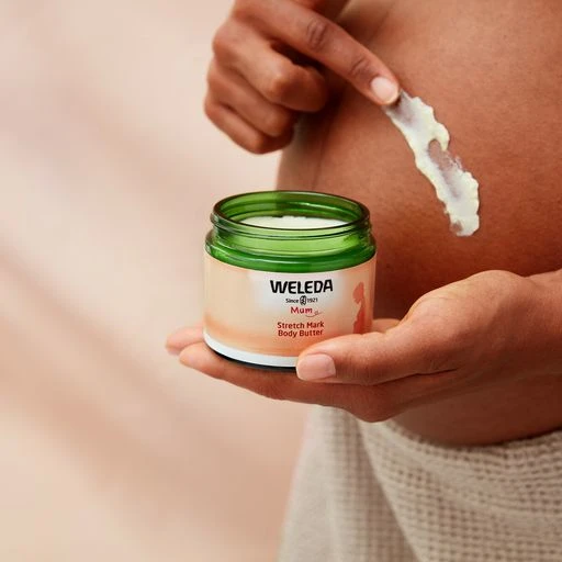 Stretch Mark Body Butter. Developed with pharmacists and midwives, this fast-absorbing formula is crafted with extracts of centella asiatica, organic shea butter, rich cocoa butter and precious oils leaving skin comforted and supple, while reducing the appearance of stretch marks. The subtle, floral scent with rose, neroli and myrrh is fresh yet delicate, smells like a hug in a jar helping mum-to-be relax and feel more serene. Bond with your baby by massaging in our nourishing formula, made from 100% natural origin.